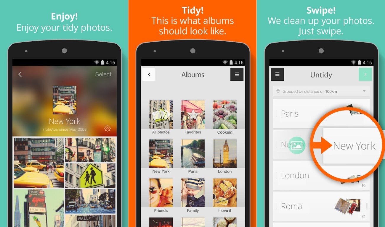 Tidy là ứng dụng thư viện ảnh giúp bạn sắp xếp lại các bức ảnh lộn xộn một cách ngăn nắp và nhanh chóng. Ứng dụng có giao diện đơn giản, dễ sử dụng, điều hướng. Nó phân loại ảnh theo thời gian, địa điểm, hình dạng.
