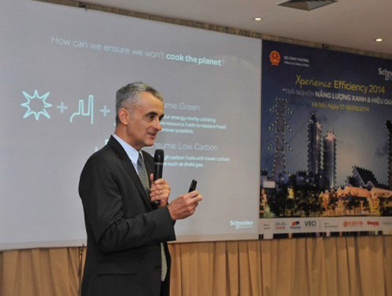 Ông Xavier Denoly, Tổng Giám đốc Công ty Schneider Electric Việt Nam và Campuchia khẳng định, Schneider Electric đã tập trung vào việc cung cấp các giải pháp tích hợp để giúp các doanh nghiệp quản lý năng lượng thông minh cũng như khuyến khích các hộ gia đình sử dụng các sản phẩm và giải pháp tối ưu năng lượng sử dụng hàng ngày. Ông nhấn mạnh, một trong những giải pháp quản lý năng lượng thông minh và giảm lượng tiêu thụ là ứng dụng CNTT. Trong thời đại truyền thông kỹ thuật số các thiết bị được kết nối với nhau thông qua giải pháp viễn thông và CNTT. Những giải pháp này sẽ điều phối các thiết bị có nhu cầu năng lượng một cách khoa học để giảm tiêu thụ năng lượng.