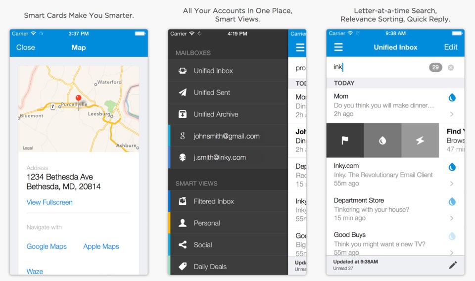 Inky Mail là ứng dụng email đơn giản cho phép bạn nhanh chóng trả lời email, tiết kiệm vô khối thời gian. Nó giúp bạn sắp xếp, tìm kiếm các email quan trọng nhanh nhất có thể. Ngoài ra, nhà phát triển còn dùng công nghệ mã hóa mới nhất để đảm bảo máy chủ và nhân viên của họ không bao giờ xem được thông tin nhạy cảm của người dùng. Inky Mail hỗ trợ nhiều tài khoản email phổ biến như Gmail, iCloud, AOL, Hotmail, Yahoo! Mail.