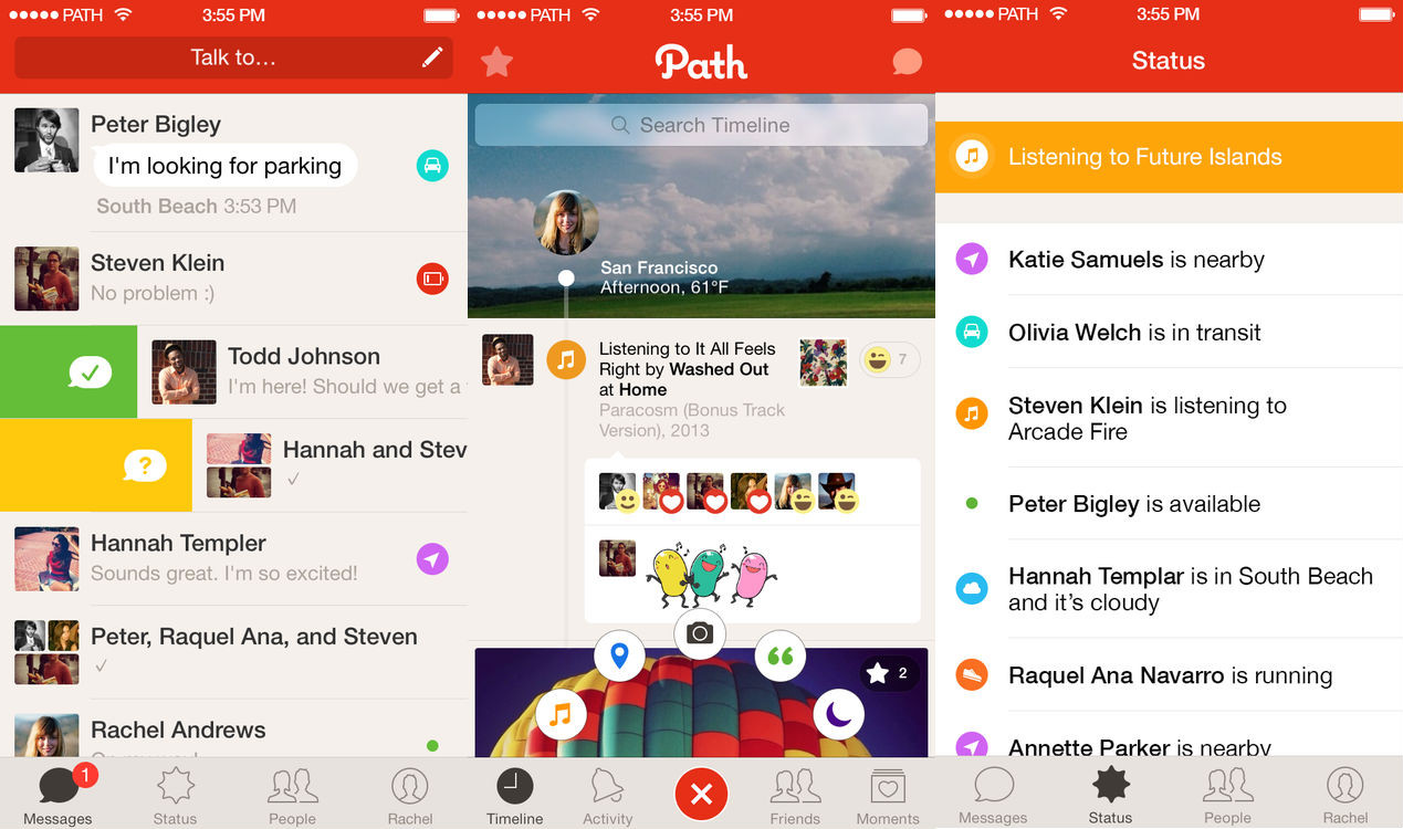Path theo bước Facebook khi cho ra mắt ứng dụng nhắn tin độc lập có tên Path Talk. Tương tự các dịch vụ cùng loại, Path Talk muốn thay thế SMS, cho phép bạn nhắn tin (văn bản, đa phương tiện) với gia đình, bạn bè và nhóm, tin nhắn được xóa khỏi máy chủ Path trong vòng 24 giờ. Ứng dụng còn có tính năng “Ambient Status”, tự động thông báo bạn đang quá cảnh, ở gần đó hay thậm chí cả pin yếu.
