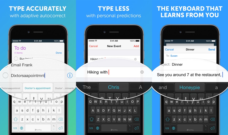 Là một trong các bàn phím nổi tiếng nhất trên Android, không có lý do gì để từ chối SwiftKey (miễn phí) khi nó có mặt trên App Store. Nếu cảm thấy bàn phím gốc trên iOS chưa đủ thông minh, bạn có thể đổi sang SwiftKey để có được khả năng tự động sửa lỗi chính xác, gõ nhanh hơn và nhiều chủ đề màu thú vị.