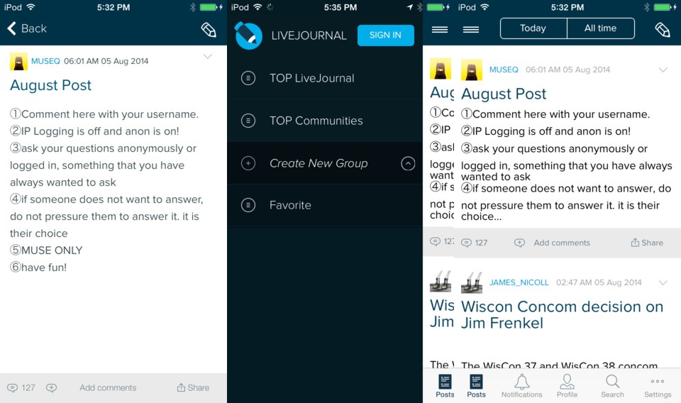 Livejournal là mạng xã hội độc đáo, cho phép người dùng khắp thế giới tìm kiếm nhau qua các ghi chép và cộng đồng chung sở thích. Ứng dụng Livejournal (miễn phí) mang đến nhiều tính năng chính của Livejournal: bạn có thể đọc các trang viết của bạn bè, quản lý danh sách người quen, đăng bài viết lên nhóm, tải ảnh, tương tác với người dùng khác.