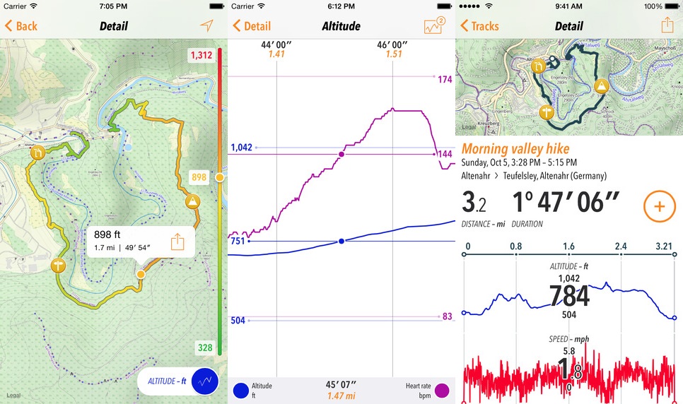Trails (miễn phí) cung cấp bản đồ địa hình để bạn sẵn sàng cho chuyến phiêu lưu sắp tới, ngay cả tại những khu vực không có kết nối Internet. Ứng dụng ghi lại hành trình của bạn với nhiều thống kê về độ cao, tốc độ, sức bền, số bước đi, áp khí, kết nối với thiết bị Bluetooth ngoại vi như máy đo nhịp tim. Bạn cũng có thể chụp lại ảnh và đánh dấu đường đi để hoàn thiện lịch sử hành trình.