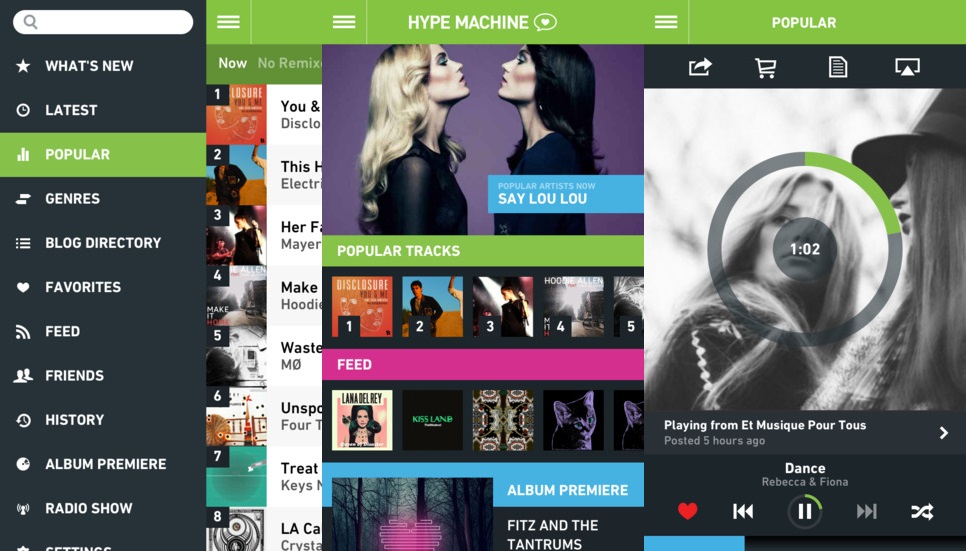 Hype Machine (3,99 USD) là địa chỉ đáng tin cậy để bạn khám phá các ca khúc và xu hướng âm nhạc mới nhất đang được bàn luận tại thời điểm hiện tại và liên tục được cập nhật. Bạn có thể xem những bài hát nào đang phổ biến, biết được bạn bè đang nghe gì. Mỗi tuần, ứng dụng lại bình chọn một album để bạn nghe toàn bộ trước khi quyết định bỏ tiền mua.
