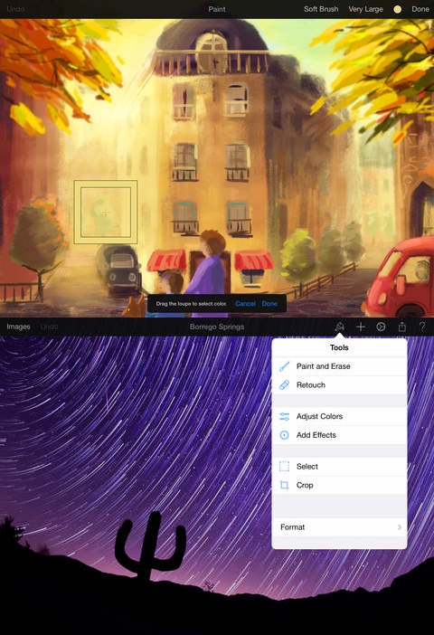 Pixelmator (4,99 USD) là công cụ chỉnh sửa ảnh cho iPad, cho phép bạn sáng tạo, chỉnh sửa và hoàn thiện hình ảnh. Ứng dụng đồng bộ giữa Mac và iPad, tận dụng lợi thế của iOS 8 để mang đến tốc độ và sự mạnh mẽ dù là vẽ, thêm hiệu ứng, typo hay kết hợp chúng lại với nhau. Pixelmator được xem là “bậc thầy” trong các ứng dụng ảnh trên iPad nhờ bộ tính năng phong phú cùng khả năng mở, lưu ảnh ở định dạng PSD, JPEG, PNG, PDF, hỗ trợ các lớp để mở trong Photoshop.