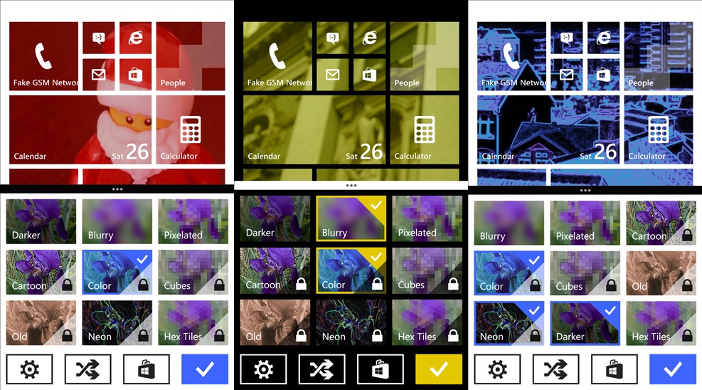 Với Windows Phone 8.1, người dùng có thể chọn hình nền cho màn hình khởi động. Tuy nhiên, ảnh raw không phải lúc nào cũng phù hợp với mục đích này, chúng quá sáng hoặc quá rực rỡ để trở thành hình nền đẹp. Ứng dụng Tile Background (miễn phí) cung cấp các bộ lọc đơn giản để khắc phục điều đó.