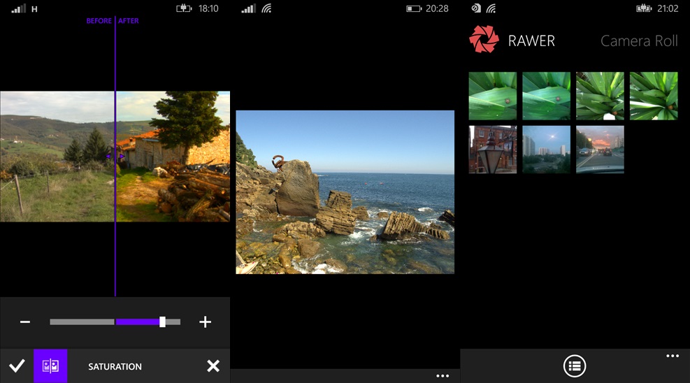 Nokia 1020, 1520, 930, Icon đều có khả năng chụp ảnh raw mà không cần phải nén jpeg làm mất chi tiết, song các file này đều có kích thước lớn và phải mở trên máy tính. Tuy nhiên, từ nay bạn có thể mở trực tiếp và chỉnh sửa ảnh chụp từ điện thoại Nokia (.dng) với ứng dụng Rawer (miễn phí). Rawer hỗ trợ cả ảnh raw từ hơn 600 loại máy ảnh khác nhau như Canon (.cr2), Nikon (.nef), Fujifilm (.raf), Sony (.arw)…