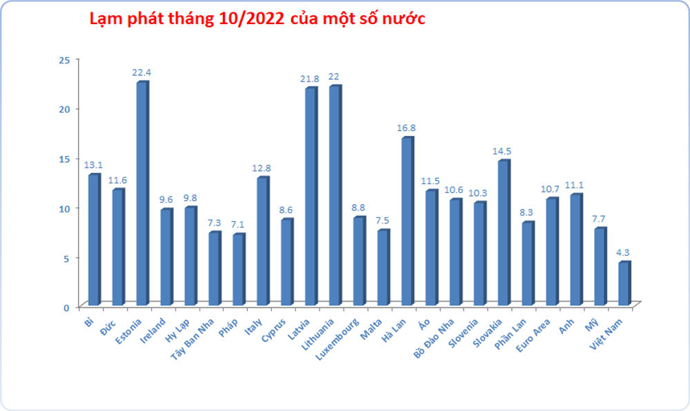 Tại Việt Nam, tình hình được kiểm soát khá tốt. Lạm phát tháng 11 là 4,37%. USD tại Vietcombank chỉ tăng hơn 8%. Tăng trưởng GDP quý III/2022 lên 13,67%.