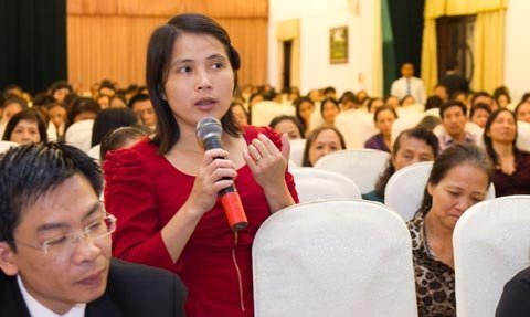 | Một khách mời đang đặt câu hỏi với GS. BS. Nguyễn Chấn Hùng tại Ngày hội |