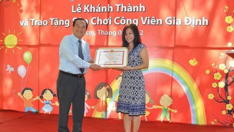 trao tặng sân chơi công cộng đạt chuẩn quốc tế lắp đặt tại công viên Gia Định