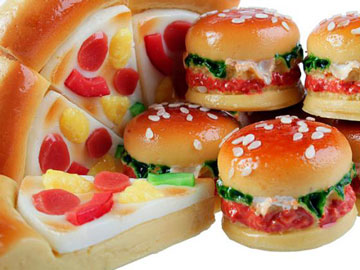 Bạn có thể chọn dâu tây, dưa hấu hay thịt heo rán, cánh gà rán, đùi gà rán, bánh Pizza, bánh kẹp thịt Burger và bích quy.