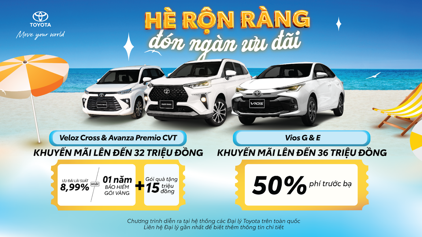 Những chuyến du lịch mùa hè 2023 sẽ trở nên thú vị hơn bao giờ hết khi có sự đồng hành của các mẫu xe Toyota. Đồng thời, hệ thống 87 đại lý và chi nhánh trải dài trên cả nước với dịch vụ chất lượng cao, đội ngũ nhân sự chuyên nghiệp của Toyota sẽ giúp khách hàng thêm an tâm trên mỗi hành trình.