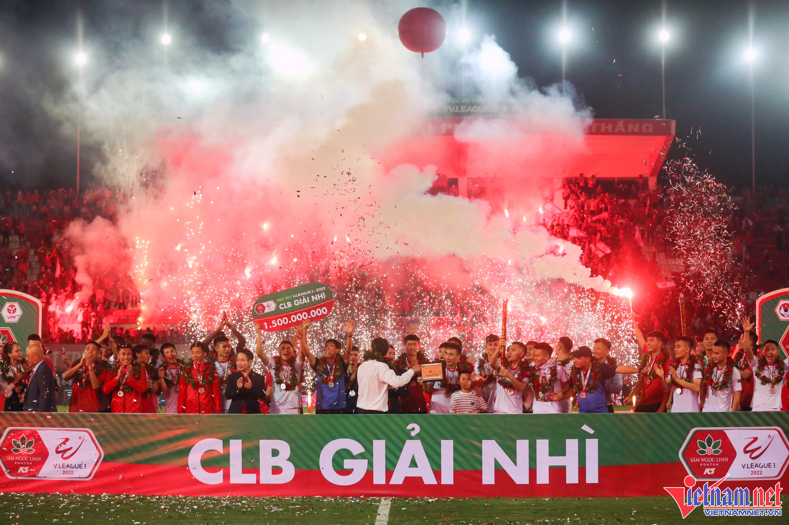 Nhưng Á quân cũng là một thành tích đáng khen ngợi và tự hào của Hải Phòng. Không chỉ tạo nên cuộc đua vô địch hấp dẫn tới vòng áp chót của Night Wolf V-League 2022, đoàn quân của HLV Chu Đình Nghiêm còn cống hiến một lối chơi đẹp mắt, hiệu quả, lập kỷ lục với 14 trận bất bại liên tiếp.