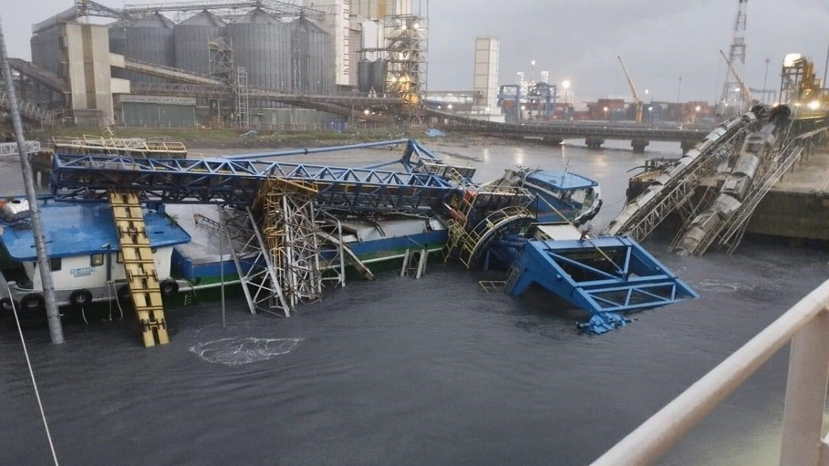 Cú va làm 46m cầu cảng phía thượng lưu cảng Interflour Cái Mép bị gãy, một phần hệ thống băng chuyền, cùng thiết bị hút hàng trên cầu cảng bị sập đổ.