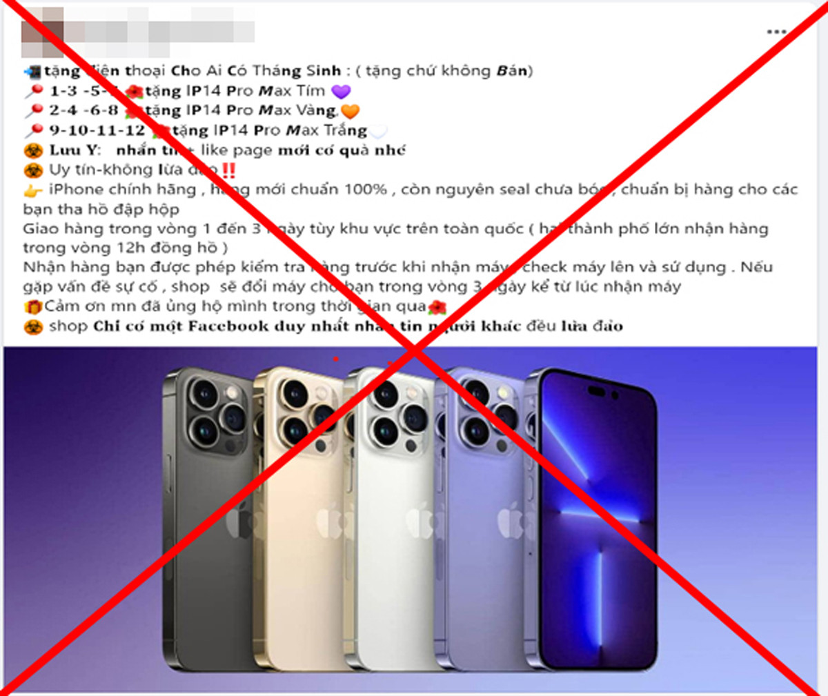 Thủ đoạn của các đối tượng là đăng tin trên các hội nhóm Facebook, Zalo… với nội dung: "Nhân dịp kỷ niệm 10 năm ngày thành lập, công ty tri ân khách hàng, tặng điện thoại iPhone 13 Pro max và iPhone 14 Pro max cho khách hàng may mắn và nhanh tay trên toàn quốc...".