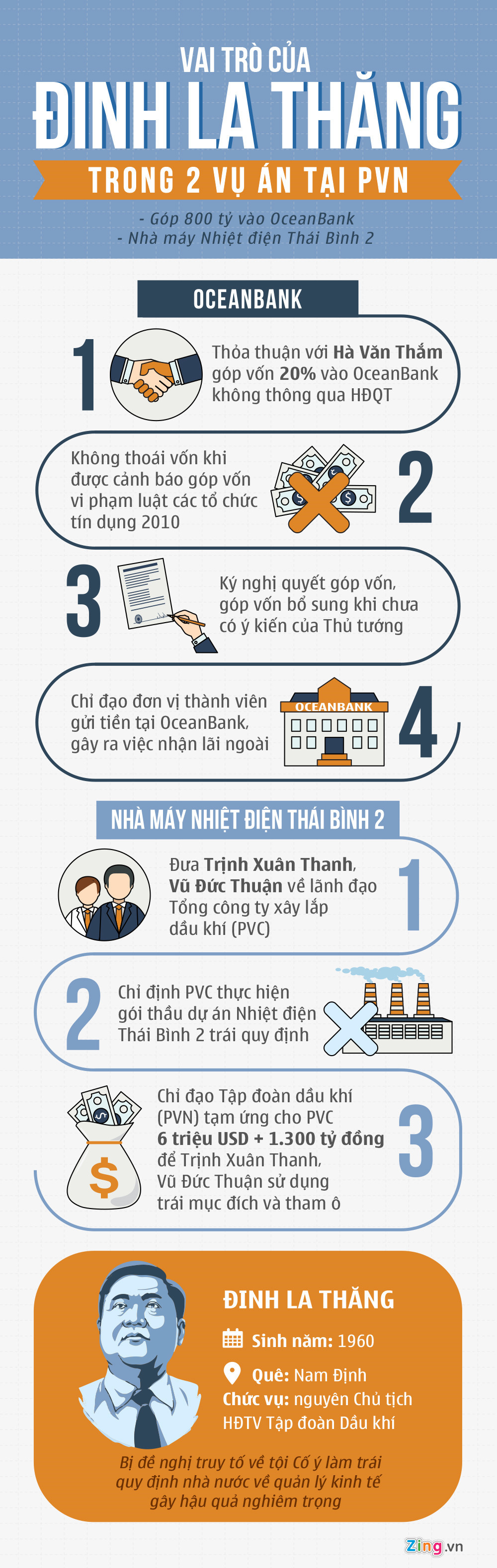 Kết luận điều tra cho thấy ông Đinh La Thăng có nhiều sai phạm khi Tập đoàn Dầu khí góp vốn vào Oceanbank và triển khai dự án nhà máy Nhiệt điện Thái Bình 2.