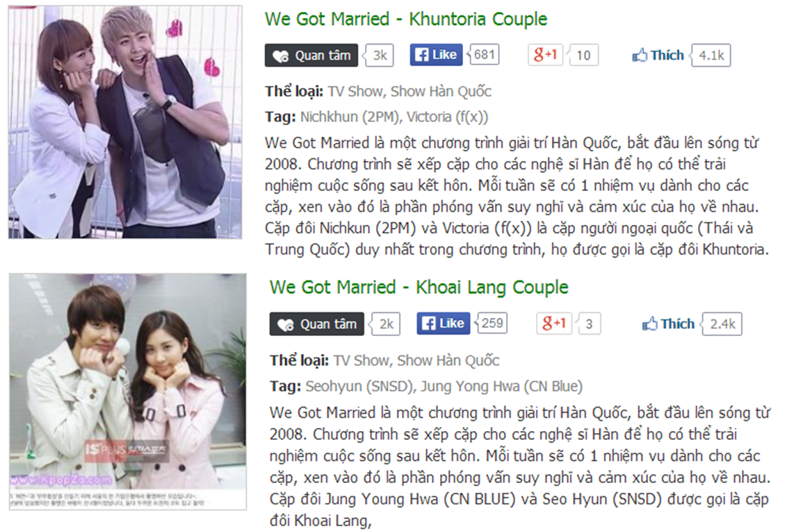 Dư chấn Valentine cũng khơi dậy các show thực tế lãng mạn cũ khi lần lượt các show như : We Got Married - Khuntoria Couple (vị trí Á quân), The Romantic & Idol - Khoảnh Khắc Hẹn Hò (hạng 3), We Got Married - Khoai Lang Couple (hạng 9) đều xếp thứ hạng cao trong BXH tuần này.