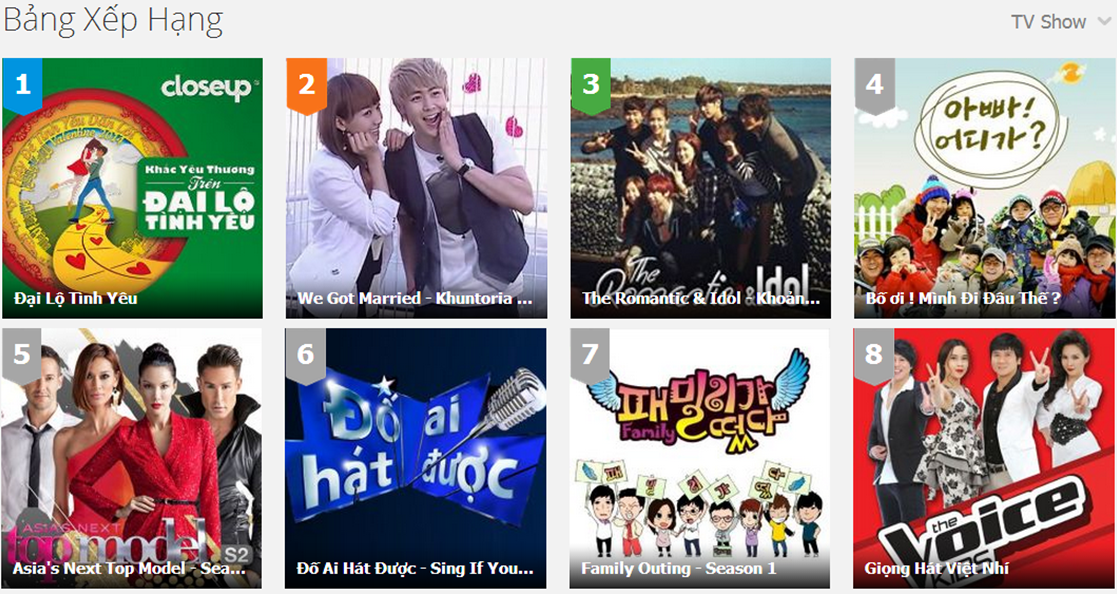Tiếp theo ở vị trí thứ 4, 7, 8 lần lượt là các show đã quen thuộc với khán giả Bố ơi ! Mình Đi Đâu Thế ?, Family Outing - Season 1, Giọng Hát Việt Nhí, trong khi Á quân tuần trước Asia's Next Top Model - Season 2 giảm xuống hạng 5 trong tuần. Với những nhận xét tiêu cực từ khán giả về các chiêu trò nhằm thu hút lượng người xem không đáng có trong chương trình, có thể thấy khán giả đã bắt đầu quay lưng lại với chương trình.