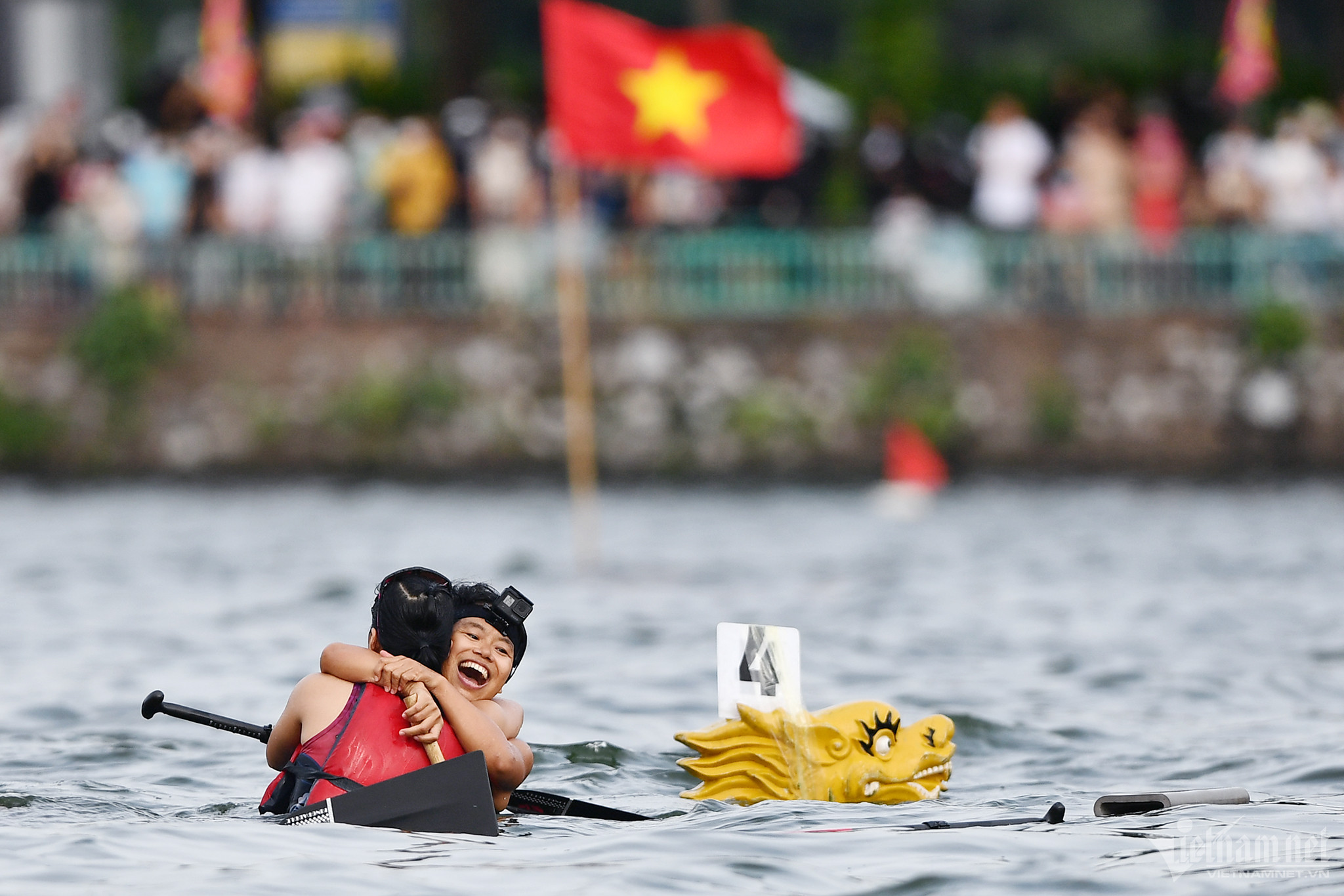 Chiều 7/10, sự cố lật thuyền và lội nước ăn mừng đoạt huy chương vàng của các thành viên đội Trâu Vàng 1 ở nội dung Khối CLB, Tổ chức doanh nghiệp hy hữu nhất lịch sử Giải Bơi chải thuyền rồng hồ Tây sau 4 năm tổ chức.