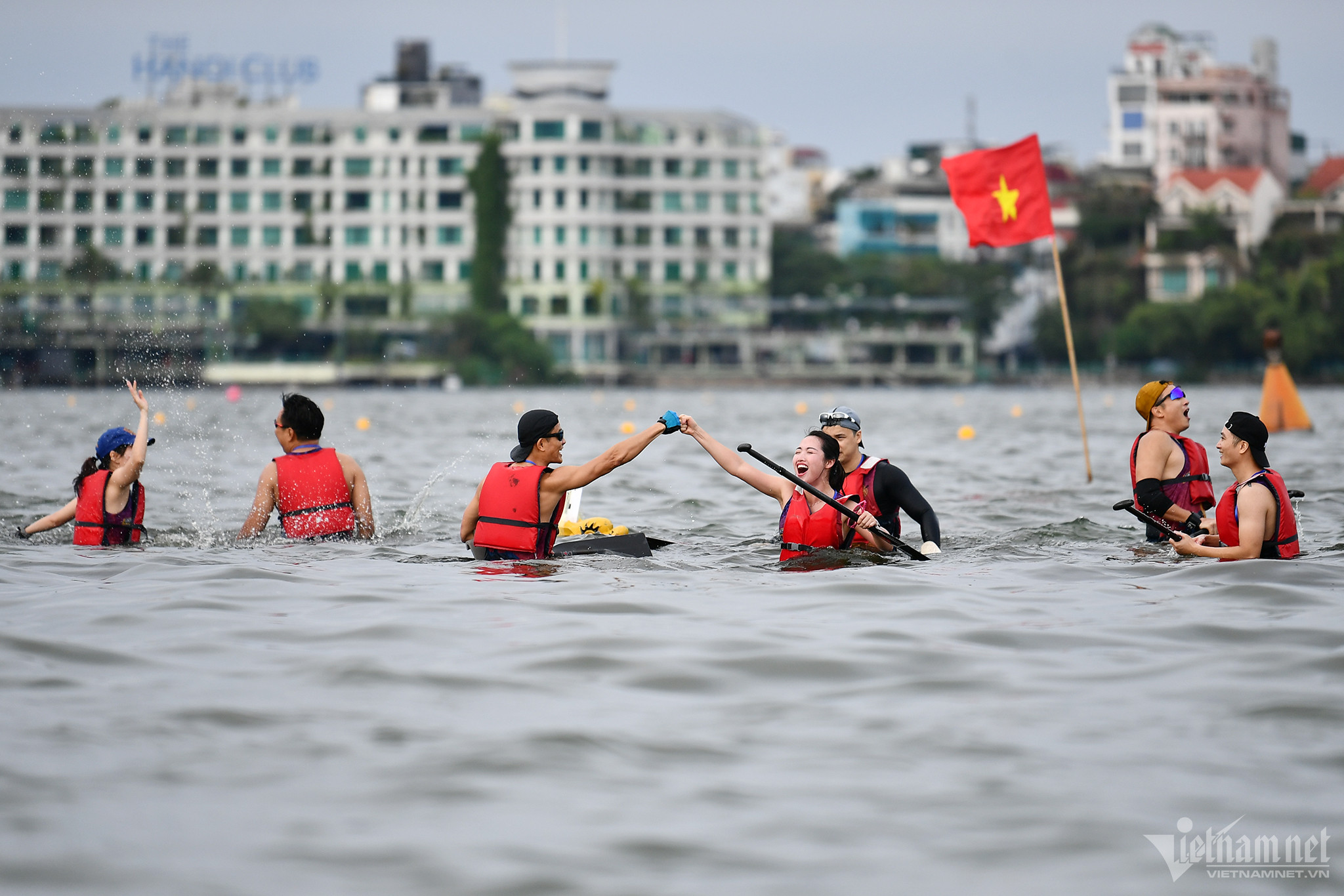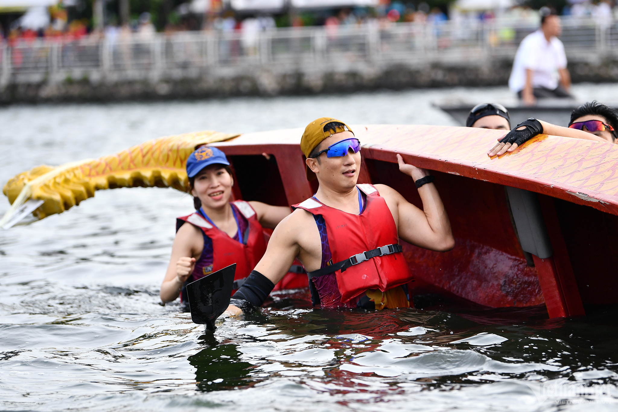 Khu vực xuất phát và về đích trên hồ Tây khá nông, do đó pha lật thuyền không làm ảnh hưởng đến các vận động viên. Họ có thể đứng tại hồ và hò hét tỏ ra sung sướng.