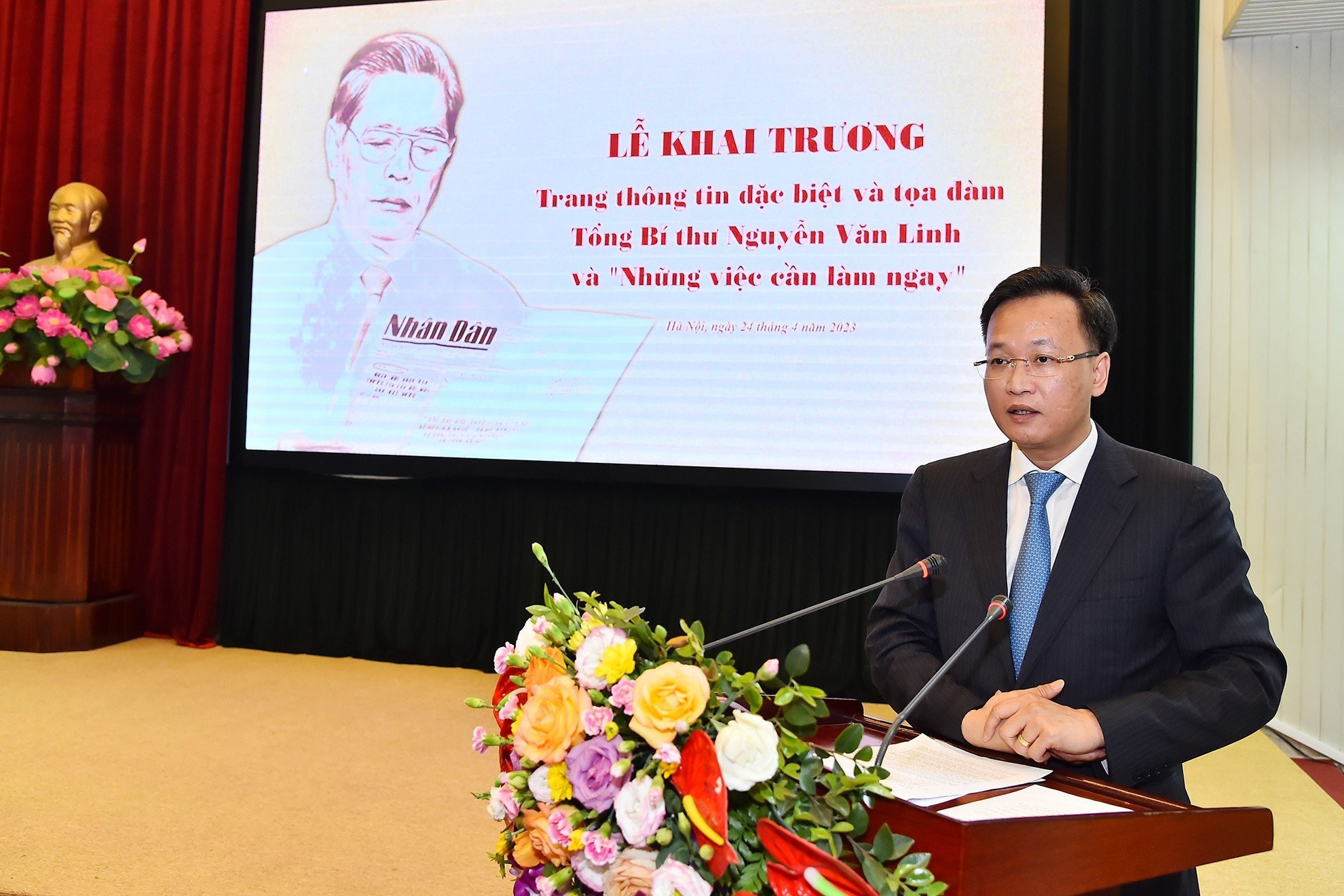 Trước hết, xin trân trọng cảm ơn Ban Biên tập Báo Nhân Dân đã tạo điều kiện tôi được tham dự Lễ ra mắt “Trang thông tin đặc biệt về Tổng Bí thư Nguyễn Văn Linh” và Tọa đàm “Tổng Bí thư Nguyễn Văn Linh và Những việc cần làm ngay”.