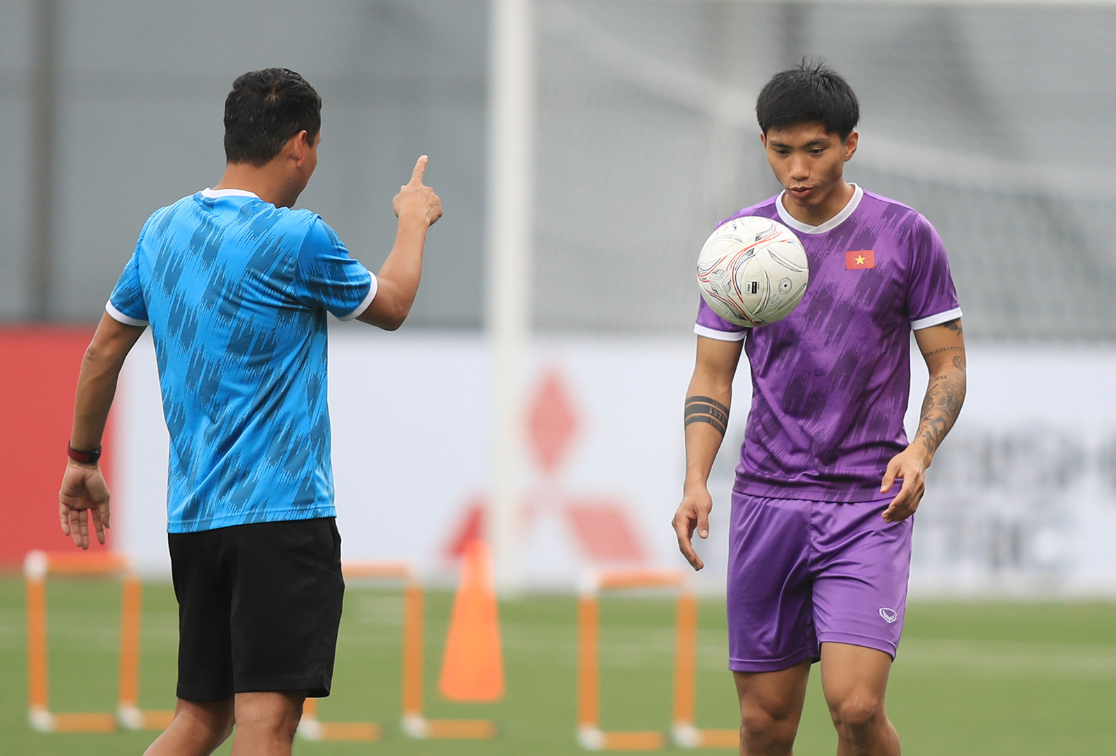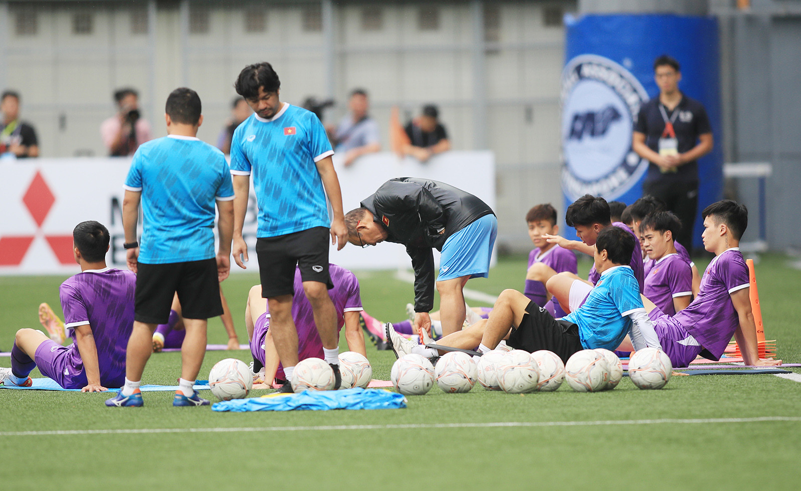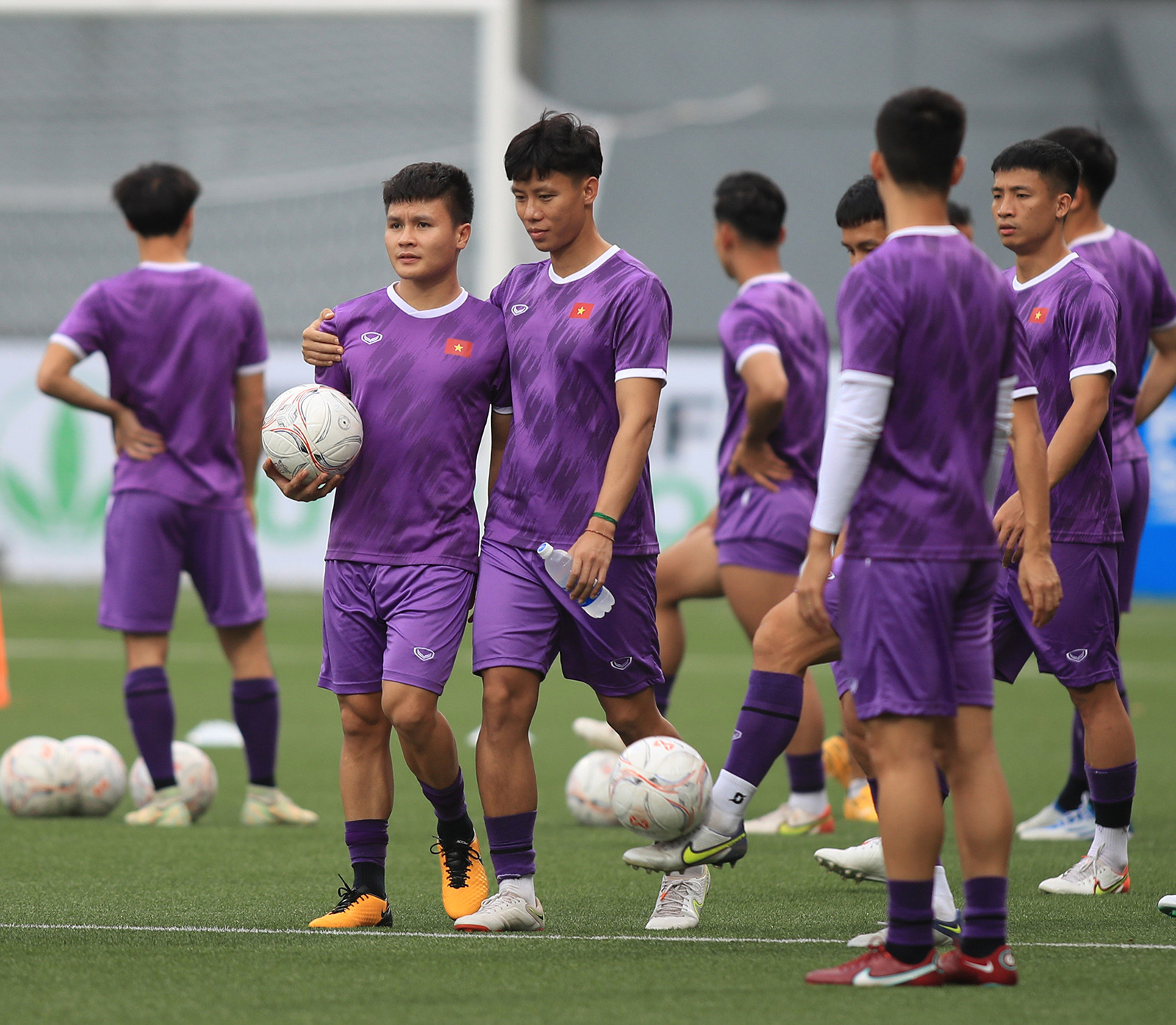 Sau khi đặt chân đến Singapore, tuyển Việt Nam lập tức bước vào buổi tập trên SVĐ Jalan Besar. Đây là sân cỏ nhân tạo, với sức chứa 6000 chỗ ngồi.HLV Park Hang Seo đích thân kiểm tra giày của các cầu thủ trong buổi tập này, bởi toàn đội phải đá trên mặt sân nhân tạo tại Singapore, với nguy cơ dính chấn thương cao hơnTuyển Việt Nam chỉ có 2 ngày tập làm quen với mặt sân cỏ nhân tạo nên HLV Park Hang Seo tỏ ra khá lo lắngThời tiết tại Singapore khá mát mẻ và thỉnh thoảng có mưa nên không ảnh hưởng tới chất lượng buổi tập của tuyển Việt Nam. Do vừa chạm trán Malaysia nên HLV Park Hang Seo chủ yếu cho học trò tập hồi phục thể lựcSau hai trận đấu, tuyển Việt Nam ghi được 9 bàn thắng và không để thủng lưới. Dù có hai chiến thắng để xếp ngôi đầu bảng B nhưng HLV Park Hang Seo vẫn tỏ ra khá thận trọng, chưa nghĩ tới tấm vé vào bán kết. Chiến lược gia người Hàn Quốc yêu cầu toàn đội có sự tập trung cao nhất cho trận đấu với SingapreQuế Ngọc Hải và Quang Hải khoác vai nhau trò chuyện trên sân Jalan Besar. Ở trận gặp Malaysia, Quế Ngọc Hải đóng góp 1 bàn thắng trên chấm 11m, trong khi Quang Hải vào sân ở phút 80 và có một pha kiến tạo cho Hoàng Đức ấn định chiến thắng 3-0Tinh thần của tuyển Việt Nam rất thoải máiTiến Linh và Phan Văn Đức quyết "nổ súng" trong trận gặp SingaporeHậu vệ Đoàn Văn Hậu nhận nhiều ý kiến khen chê bởi lối chơi quyết liệt quá mức cần thiết ở trận thắng MalaysiaDù vậy, cầu thủ sinh năm 1999 không quan tâm, bởi điều quan trọng nhất là cùng tuyển Việt Nam giành chiến thắng để chinh phục ngôi vô địch AFF Cup 2022. Trận đấu giữa tuyển Việt Nam vs Singapore sẽ diễn ra vào lúc 19h30 ngày 30/12 (20h30 giờ địa phương).