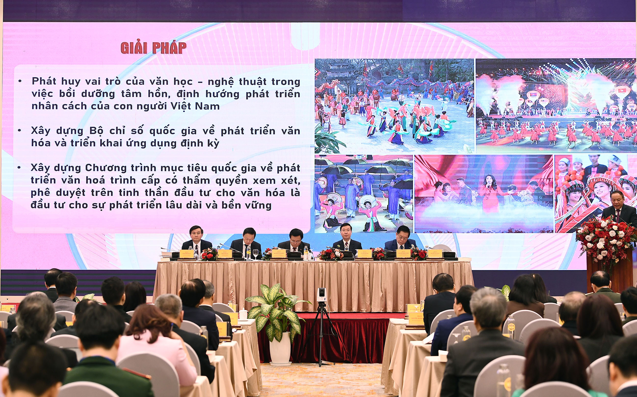 Phát huy vai trò của văn học - nghệ thuật trong việc bồi dưỡng tâm hồn, định hướng phát triển nhân cách của con người Việt Nam, nhất là trong thế hệ trẻ. Tập trung phát triển các loại hình nghệ thuật, từ nghệ thuật đại chúng đến nghệ thuật bác học theo tinh thần Nghị quyết Đại hội XIII của Đảng. Phát huy tối đa vai trò của nhân dân với tư cách là chủ thể của sáng tạo và phát triển văn hóa.