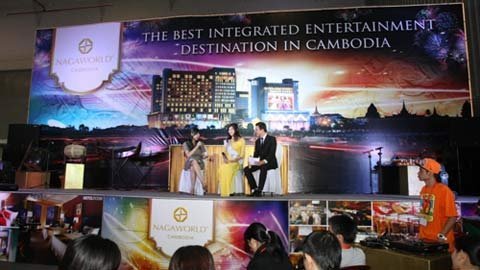 | Trong vai trò đại sứ NagaWorld, Kiều Khanh giới thiệu tới báo giới văn hóa, nét đẹp của Campuchia cũng như NagaWorld |