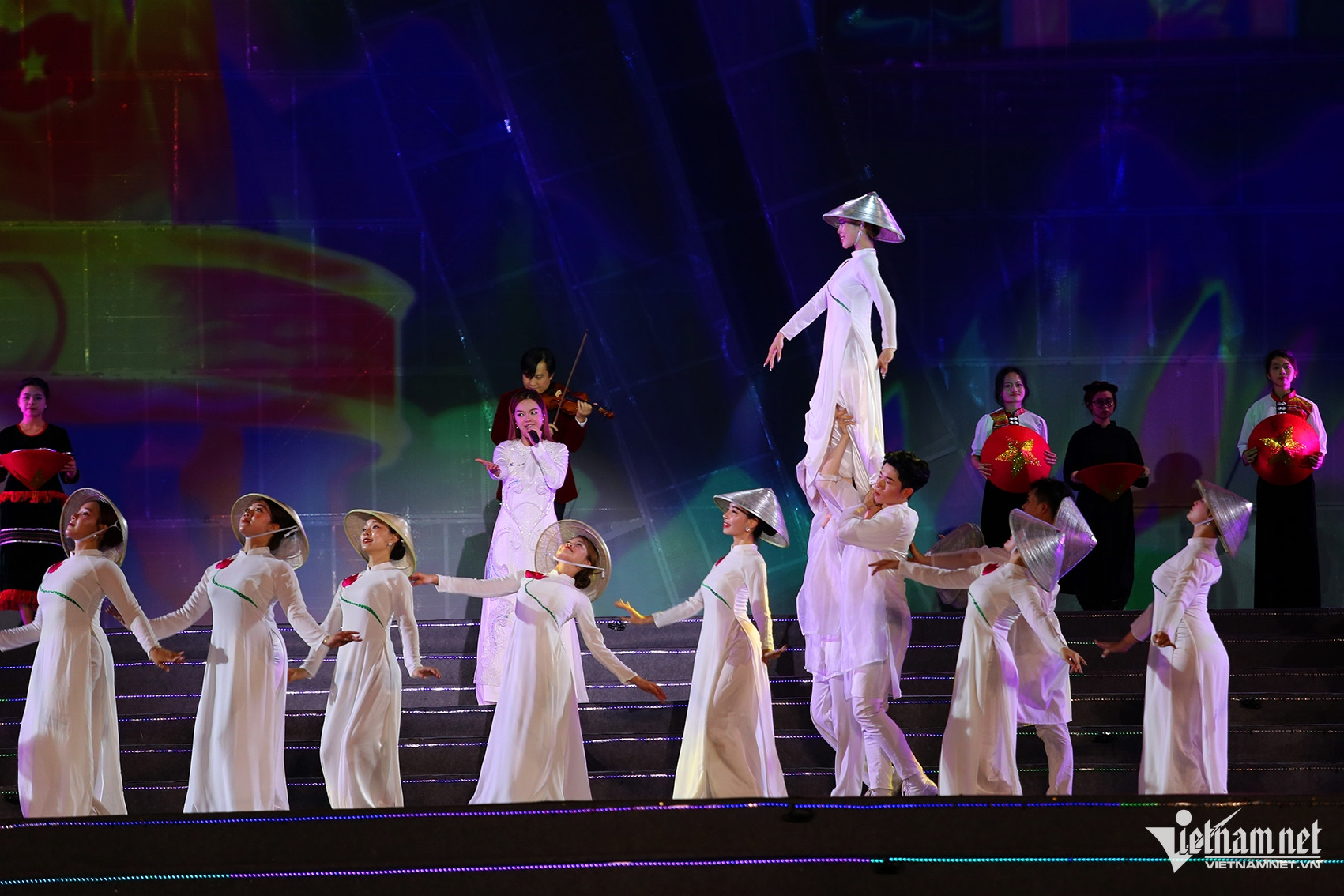 Điểm nhấn đặc biệt của chương trình là phần trình diễn các di sản văn hóa phi vật thể được UNESCO công nhận như then Tày Bình Liêu, quan họ Bắc Ninh, nhã nhạc cung đình Huế, cồng chiêng Tây Nguyên, đờn ca tài tử Nam Bộ, hát văn “Cô đôi Thượng ngàn” lần lượt được tái hiện theo phong cách nghệ thuật đương đại. Những hình thức nghệ thuật này không chỉ được giữ nguyên hồn cốt mà còn được làm mới qua phối khí, sân khấu hóa và tương tác thị giác hiện đại, giúp tiếp cận khán giả trẻ và du khách quốc tế một cách sống động, gần gũi.