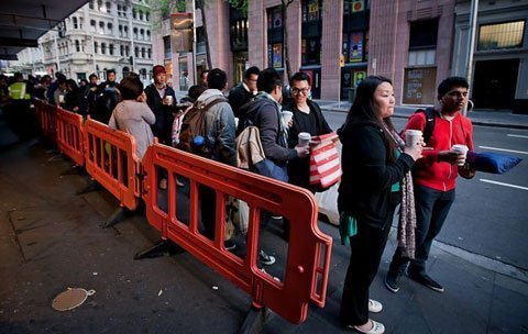 | Dòng người xếp hàng chờ mua iPhone 5 tại một cửa hàng của Apple. Ảnh: Sfgate |
