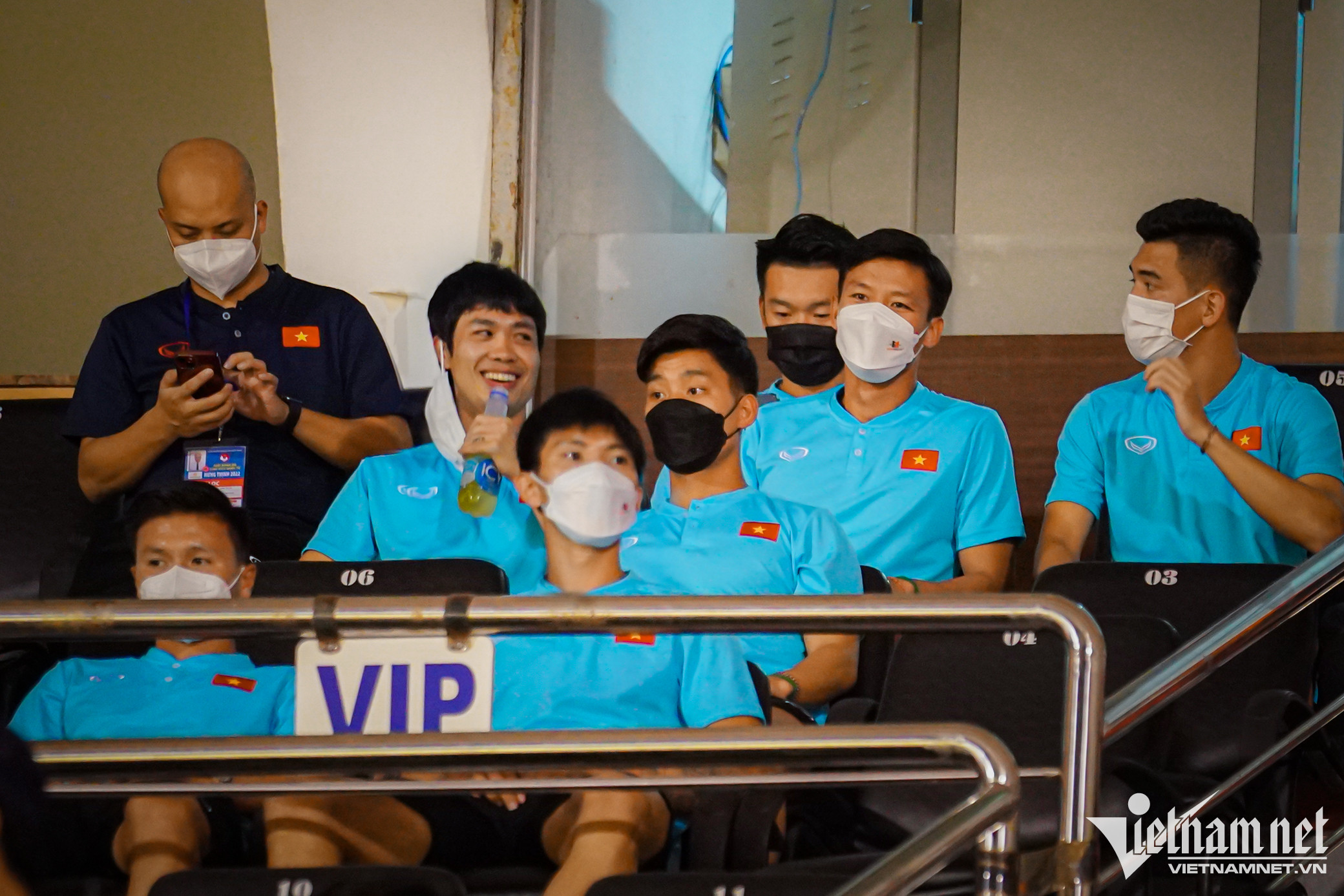 Trên khán đài VIP, xuất hiện 7 cầu thủ trụ cột của đội tuyển Việt Nam gồm Công Phượng, Văn Hậu, Tiến Linh, Văn Toản, Xuân Trường, Văn Thanh và Quang Hải. Các gương mặt này không được HLV Park Hang-seo đăng ký thi đấu, riêng đội trưởng Đỗ Hùng Dũng phải rời TP.HCM trở về Hà Nội vì chuyện gia đình. Trong trận đấu hôm nay, Văn Quyết đã được gọi trở lại sau 2 năm vắng bóng tại tuyển quốc gia. Ngay từ phút 35, tiền đạo mang áo số 10 tung cú sút xa đẹp mắt, mở tỷ số cho trận đấu. "Dù chỉ là trận giao hữu, được đá cho đội tuyển quốc gia sau thời gian dài không được tham dự là dấu ấn rất lớn với tôi", anh chia sẻ sau trận đấu.Sau đó, thủ quân CLB Hà Nội liên tiếp là người kiến tạo những pha lên bóng nguy hiểm, trở thành tâm điểm khiến hàng phòng ngự đội tuyển Singapore phải "chăm sóc" kỹ hơn.