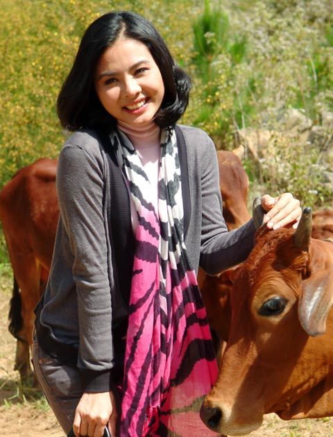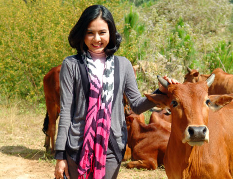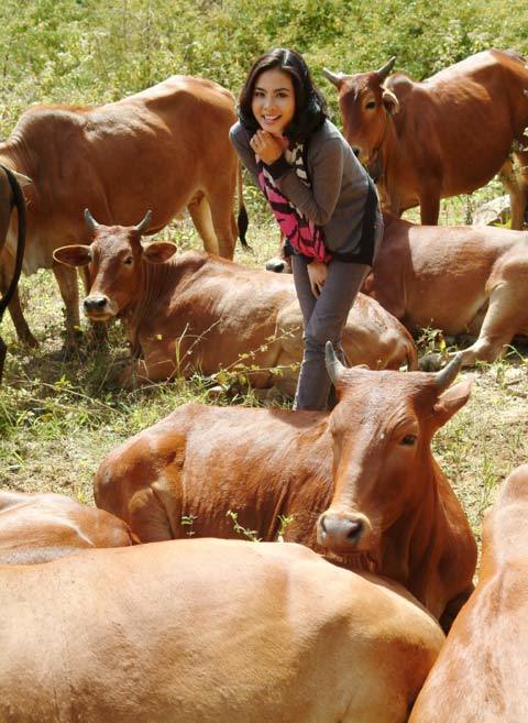 Phút giải lao trong một chuyến đi ghi hình xa, nữ diễn viên Vân Trang ngẫu hứng tạo dáng chụp ảnh giữa đàn bò đang nằm nhai cỏ bên đồi. Ý tưởng nghịch ngợm đã cho ra loạt ảnh lạ mắt với diễn viên chính nhí nhảnh lạc giữa những "diễn viên phụ" hiền lành, ngơ ngác.