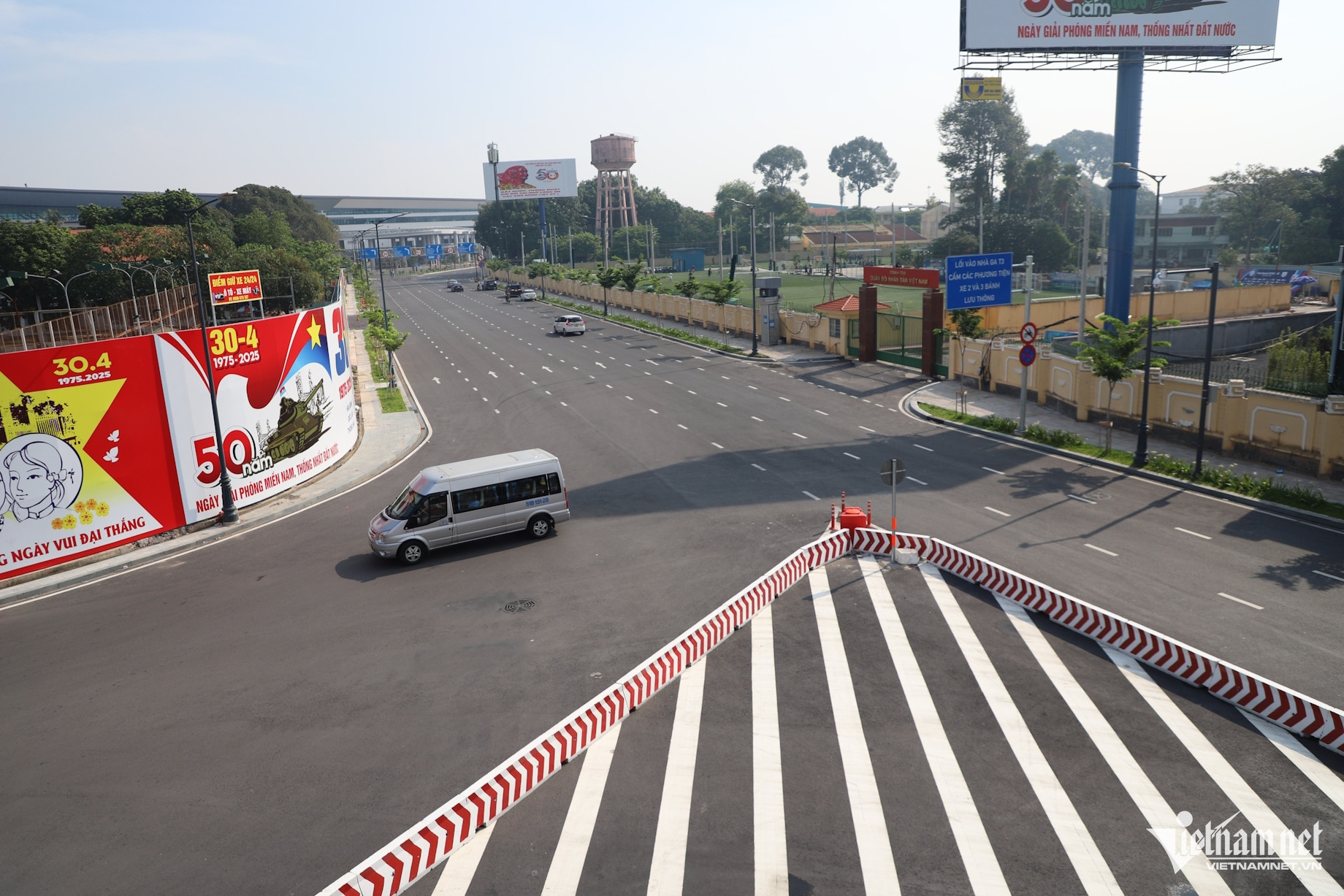 Ở vị trí giao cắt, người đi xe máy hay ô tô sẽ rẽ phải, chạy một đoạn khoảng 100m. Đến trước cổng ra của nhà ga T3 sân bay Tân Sơn Nhất thì chuyển làn sang trái rồi quay đầu ngược lại.