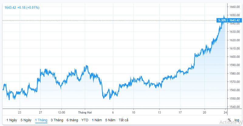 | Biến động giá vàng thế giới trong 1 tháng qua. |