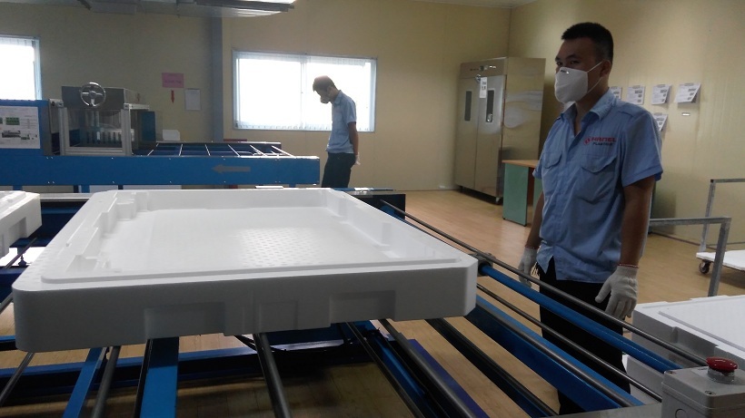 | Sản xuất xốp nhựa cho Samsung ở Công ty xốp nhựa Hanel. Ảnh: L.Bằng |