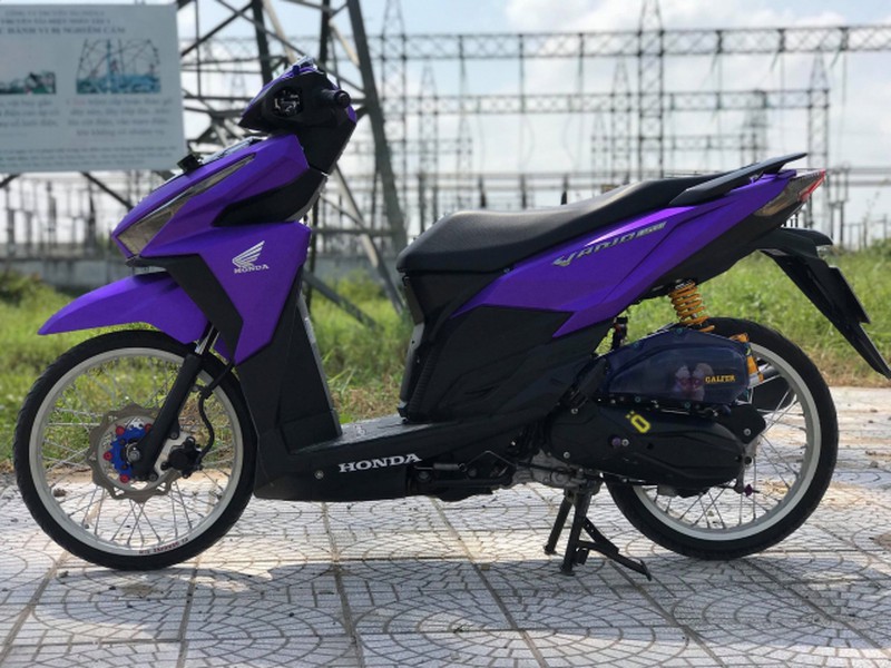 Được biết đây là 1 bản độ đến từ biker ở Bạc Liêu. Có thể thấy sắc màu mà chủ xe này chọn là tím mộng mơ, 1 gam màu yêu thích từ nam cho đến chị em phụ nữa, đi kèm đó là những sự phá cách đặc biệt khác hẳn so với nguyên thủy như xuống bánh căm, độ phuộc bình dầu.