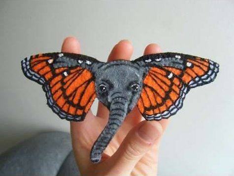 Trâm cài đầu có hình khuôn mặt một chú voi và hai tai lại là đôi cánh xinh đẹp hẳn là sự kết hợp độc đáo nhất giữa một con thú nặng nhất ở vương quốc có vú và một con côn trùng mỏng manh.