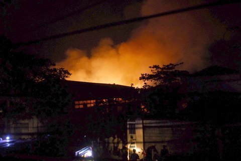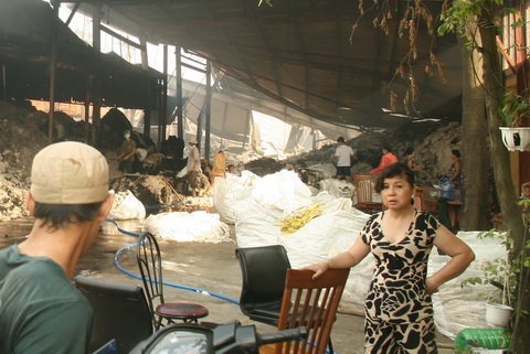 | Cảnh hoang tàn sau vụ cháy. Trong ảnh, các công nhân đang dọn dẹp nhà xưởng. |
