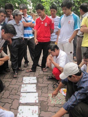 Nhiều phụ huynh còn tổ chức đánh cờ để "giết thời gian" (Ảnh: Dân Việt)