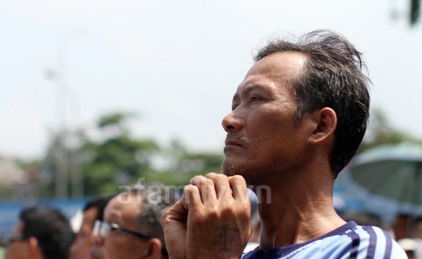 Ông bố này luôn căng thẳng, lo lắng không biết con trong phòng thi có làm bài được không. Thỉnh thoảng ông lại lẩm bẩm cầu nguyện cho con thi đỗ.