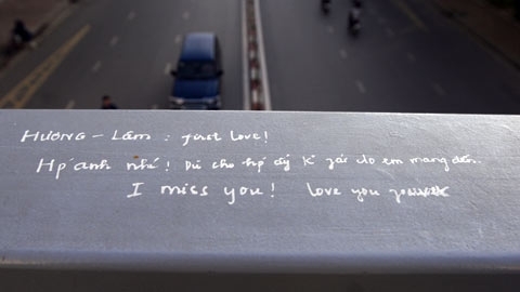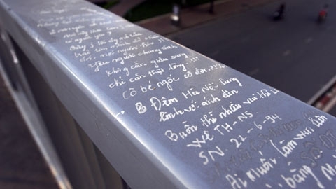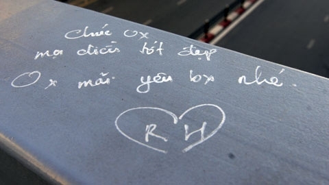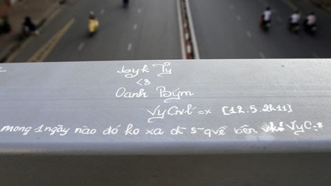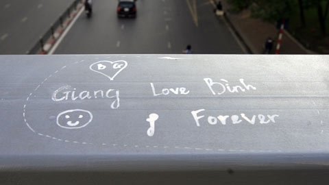 | Những lời hẹn ước, những câu yêu thương được viết trên thành cầu bộ hành. |