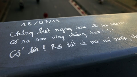 những triết lý kiểu học trò về tình yêu, tình bạn được viết trên thành cầu bộ