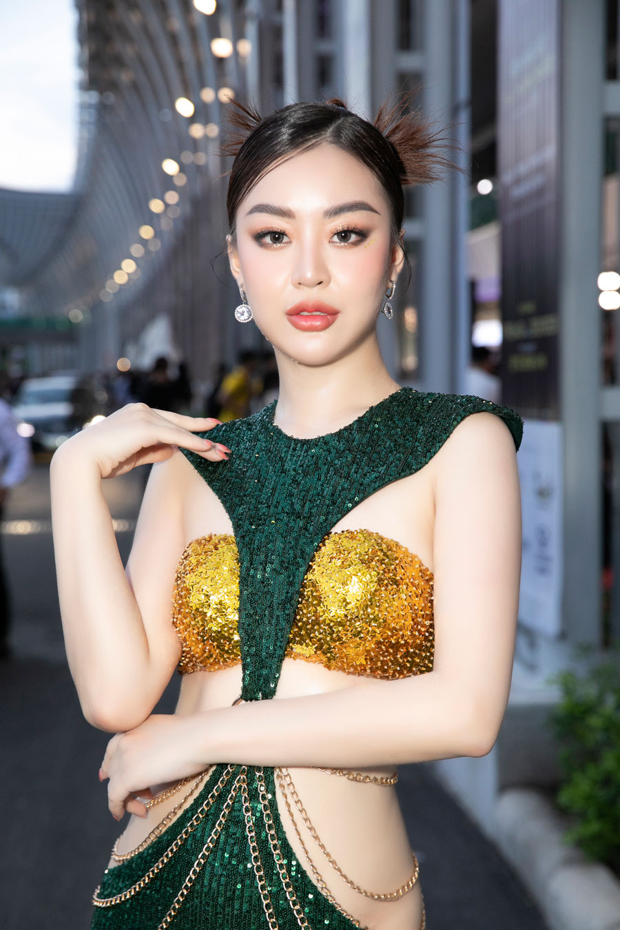 Người đẹp đóng phim 'Bão ngầm' khoe thân hình gợi cảm với váy xẻ táo bạo.