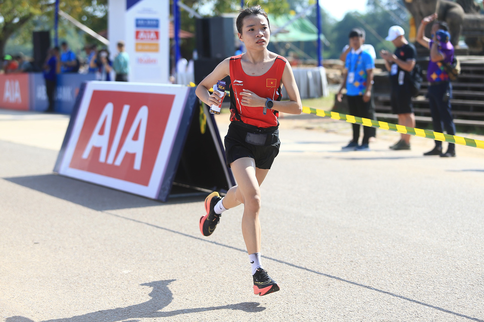 Ở nội dung nữ, VĐV tí hon 19 tuổi, cao chỉ nhỉnh hơn 1,45m và nặng vỏn vẹn 37 kg Lê Thị Tuyết mang về tấm HCB cho tuyển điền kinh Việt Nam với thành tích 2 giờ 49 phút. Đáng chú ý, Lê Thị Tuyết có nhiều thời điểm dẫn đầu cuộc đua nhưng sau đó bị đối thủ vượt lên. Cô chỉ về sau VĐV giành HCV khoảng 300m.