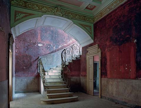 Trong quá trình suy tàn của căn biệt thự, những bức tường bị bóc trần trụi,