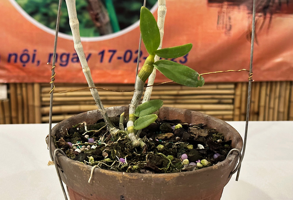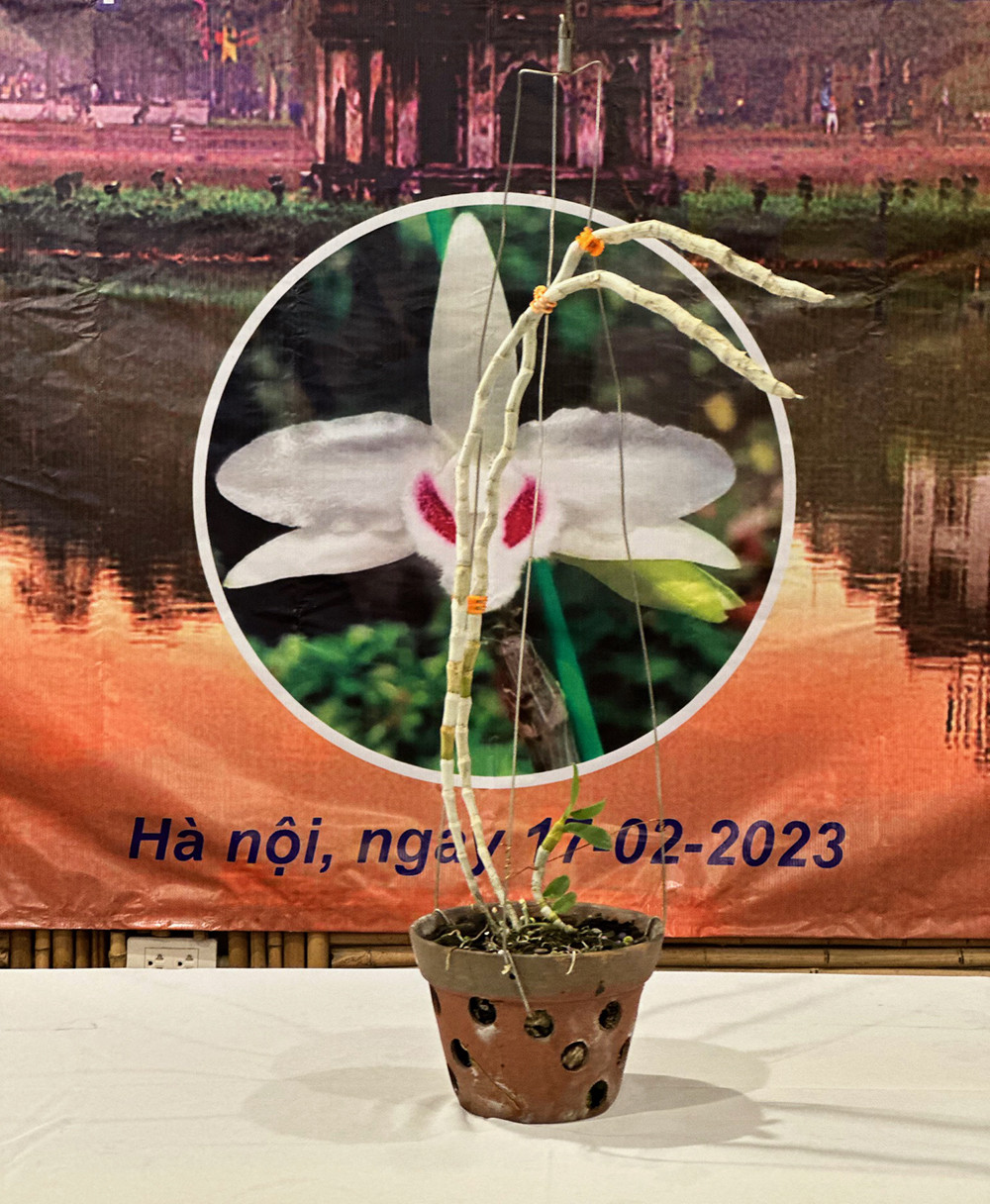 Mới đây, một nhóm 10 người chơi hoa lan ở Hà Nội mới công bố sở hữu chậu lan đột biến Bướm Đại Ngàn gồm 2 thân cao 60cm/ thân và 1 kie nhỏ.