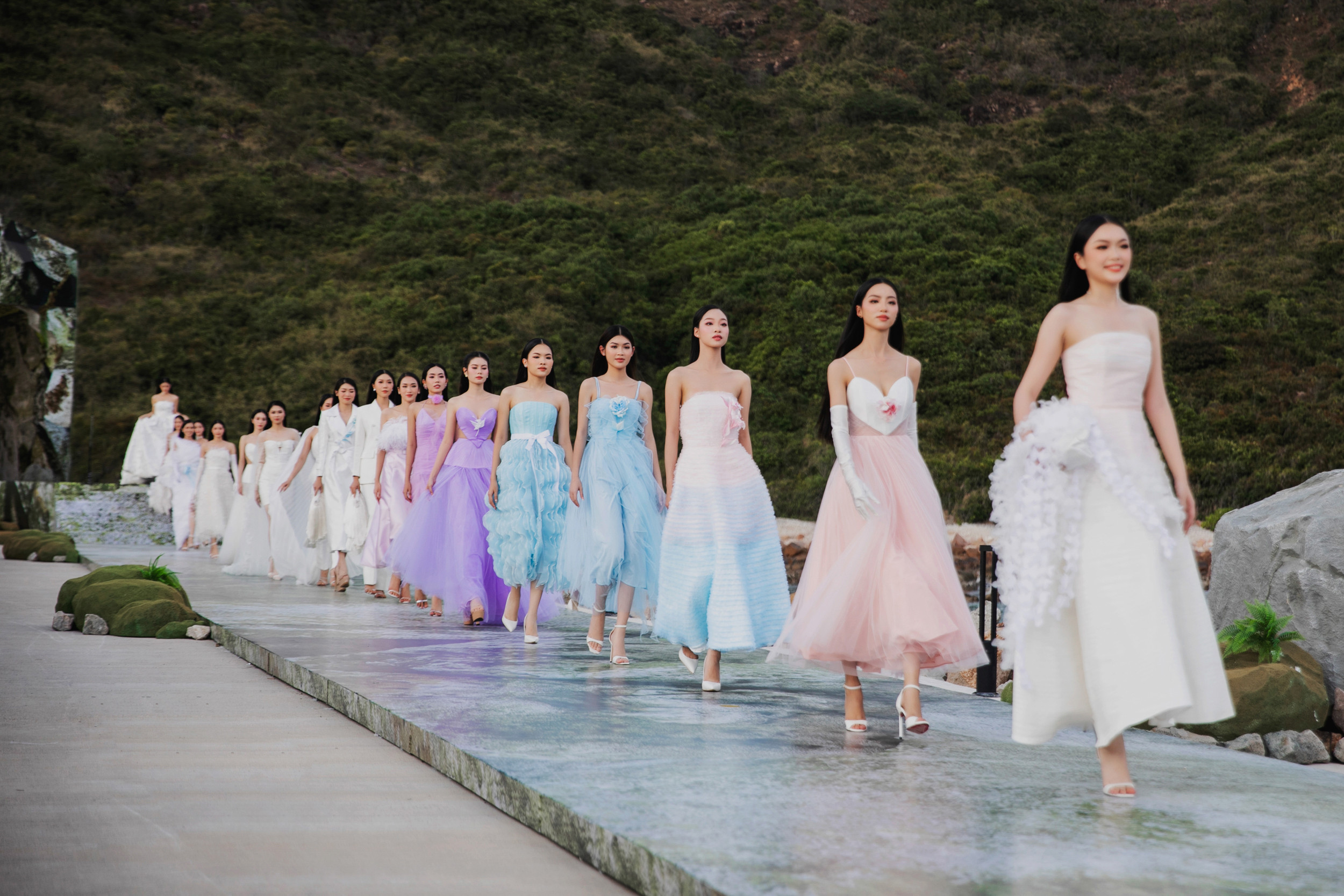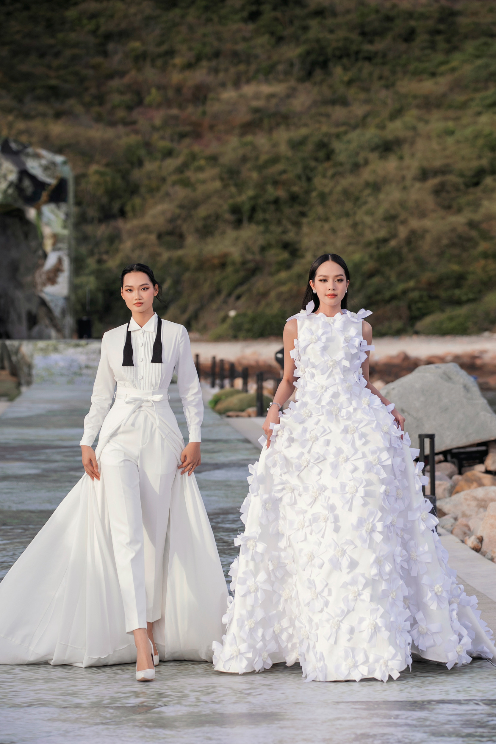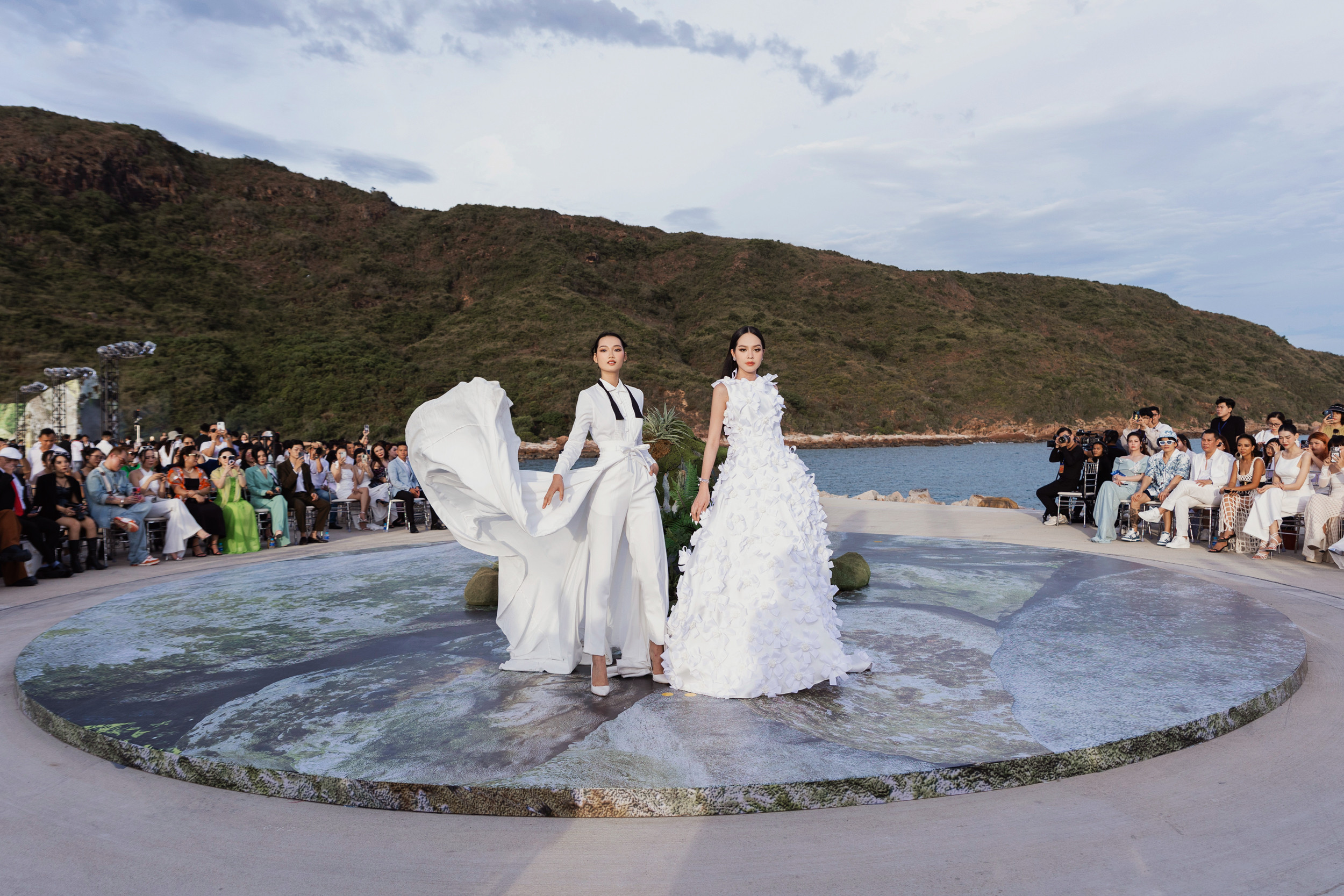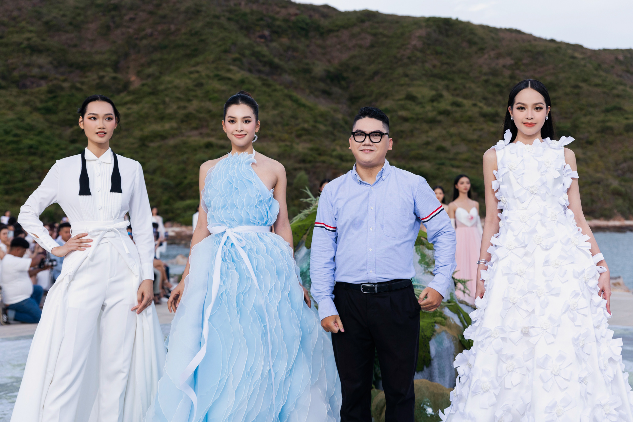 Tối 16/7, nhà thiết kế Hà Thanh Việt trình làng bộ sưu tập mới mang tên 'Ocean’s Soul' trong sự kiện Vietnam Beauty Fashion Fest thuộc khuôn khổ cuộc thi Miss World Vietnam - Hoa hậu Thế giới Việt Nam 2023 diễn ra tại Quy Nhơn.Đảm nhận vai trò vedette trong bộ sưu tập là hoa hậu Tiểu Vy. Cô diện bộ váy tông màu xanh pastel ngọt ngào với những đường xếp ly cầu kỳ dọc thân váy.Sau 5 năm đăng quang Hoa hậu Việt Nam 2018, nhan sắc quyến rũ của Tiểu Vy vẫn khiến khán giả trầm trồ. Kỹ năng catwalk của người đẹp Đà Nẵng cũng được đánh giá ngày càng chuyên nghiệp và ấn tượng.Hoa hậu Thanh Thủy và siêu mẫu Quỳnh Anh giữ vai trò diễn mở màn. Hai người đẹp cùng diện trang phục tông màu trắng nhưng theo phong cách trái ngược.Nếu Quỳnh Anh diện set đồ mang phong cách menswear ấn tượng, lịch lãm thì Thanh Thủy xinh đẹp như công chúa với bộ váy được đính kết cầu kỳ, tỉ mỉ.Bộ sưu tập còn có sự tham gia trình diễn của top 40 thí sinh Miss World Vietnam 2023. Các người đẹp khoác trên mình những thiết kế bay bổng, lãng mạn, sải bước trên đường catwalk ấn tượng dọc bờ biển.Bộ sưu tập gợi nhắc những ký ức thân thương về miền đất Quy Nhơn nắng gió. Không gian thanh bình và quen thuộc được nhà mốt khéo léo tái hiện qua loạt phục trang tinh tế, nhẹ nhàng. Lựa chọn gam màu pastel ngọt ngào nhằm tôn vinh châm ngôn sáng tạo, 'Ocean’s Soul' đã khéo léo chắt lọc tinh hoa đương thời nổi bật, chiêu đãi thị giác người đối diện bằng những biểu tượng sống động gợi nhắc đến tình yêu.