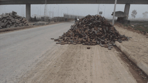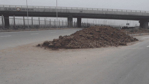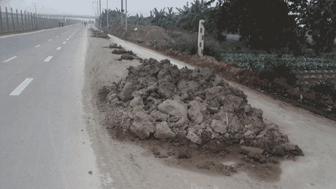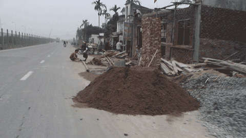 Vì thế, trong suốt gần hai tháng qua, con đường đã trở thành địa điểm đổ đất phế thải trộm. Có nơi trở thành bãi rác, thành chợ bán ngô hoặc thành nơi tập kết vật liệu xây dựng của người dân.