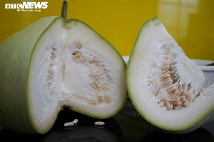 Đây là quả bầu được ông Quả dành lấy hạt giống để độ tháng 6, tháng 7 âm lịch sẽ ra bầu chuẩn bị cây trồng cho vụ sau. "Giống bầu này chỉ cần giàn thấp, tầm hơn 1m, không thích ở trên cao gió lộng. Bầu leo lên giàn hay mái nhà đều được, ra giêng sẽ được quả ăn", ông Quả nói.