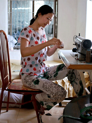 | Phụ nữ Đình Tràng đều cao ráo, nhiều người rất xinh xắn và thuần thục với công việc ruộng đồng, may vá. Trong ảnh: chị Ngô Thị Huyền, cao 1,75m |